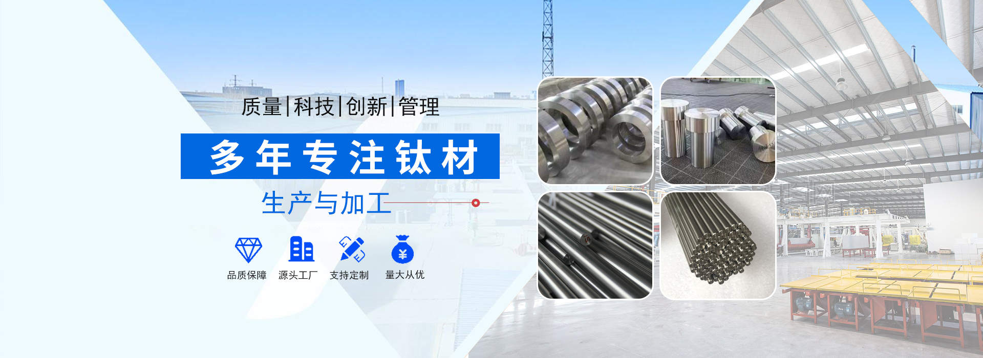 陜西辰軒鑫達金屬材料有限公司位于具有“中國鈦城”之稱的陜西寶雞高新技術(shù)開發(fā)區(qū),公司依托“中國鈦城”的雄厚的行業(yè)資源,強大的有色金屬科研及制造實力,完整的有色金屬工業(yè)制造產(chǎn)業(yè)鏈,形成了一套完整的生產(chǎn)流程,公司主要從事有色金屬的加工,生產(chǎn)及銷售及工業(yè)及民用鈦、鎳、鉬及其他稀貴金屬材料的深加工研究生產(chǎn)及國際、國內(nèi)貿(mào)易,集有色金屬材料銷售、產(chǎn)品設(shè)備制造及新產(chǎn)品開發(fā)為一體。主要以生產(chǎn)鈦材及其他金屬材料為主,主導(dǎo)產(chǎn)品有:鈦錠、鈦棒、鈦絲、鈦板、鈦法蘭等以及其他有色金屬材料:鋯板、鋯管、鋯棒、鋯鈀、鋯餅、鈮管、鈮棒、鉭板、鉭棒、鉭管等有色金屬。產(chǎn)品廣泛應(yīng)用于化工、冶金、石油、紡織、醫(yī)藥、輕工、環(huán)保···